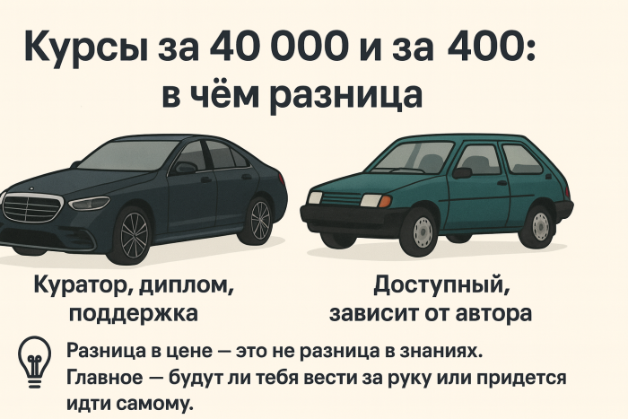 💡 Главное: разница в цене — это не разница в знаниях. Это разница в том, будут ли тебя вести за руку или придётся идти самому.