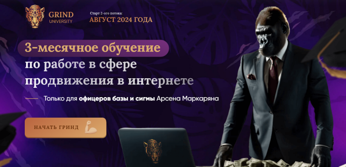 Grind University — это 3-месячное обучение от Арсена Маркаряна и Александра Кучеренко, созданное, чтобы вывести тебя на реальный доход от 100 000 ₽ в месяц за счёт профессий digital-сферы.